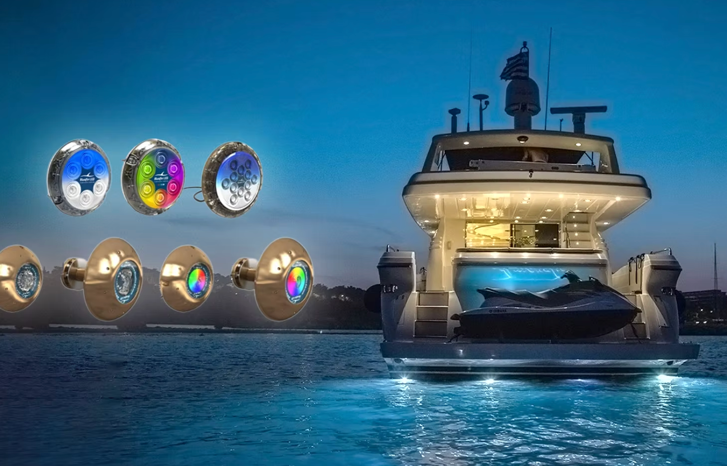 Class Marine is now the official distributor of Bluefin LED underwater lights in the UAE. UK-based Bluefin LED specializes in the design, manufacture and supply of innovative LED marine lighting products. Bluefin underwater lights are available in different sizes and color of your choice- white, blue, green, dual color or RGBW changing options.